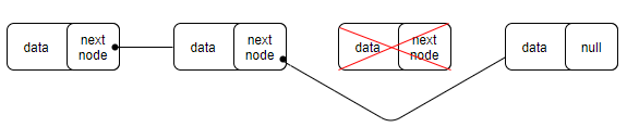 데이터의 삭제 또한 참조된 삭제 노드를 그 다음노드로 바꾸어 주면 됩니다. 그렇기에 O(1)의 시간 복잡도를 가집니다.