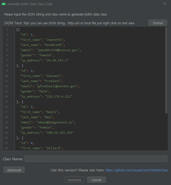 평소 직접 손으로 작성하기도 하고 SerializedName 어노테이션도 빼먹고 하다보니 Release apk 빌드 시 proguard로 인한 데이터 오류가 발생한 적도 있어 해당 플러그인을 이용하고 있습니다. 실수를 줄이고 편합니다.